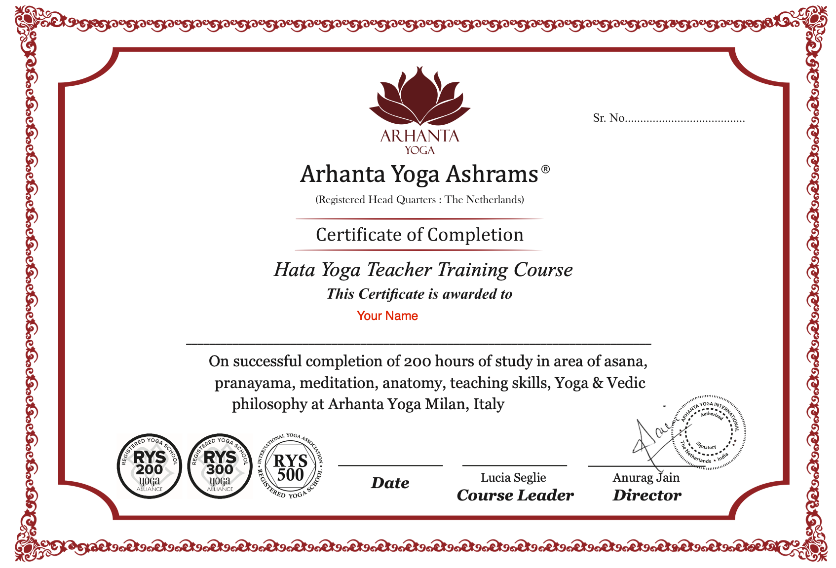 Come scuola di yoga registrata presso Yoga Alliance e affiliata ad Arhanta Yoga, la formazione è certificata a livello internazionale, permettendo al termine del percorso la registrazione come RYT 200.